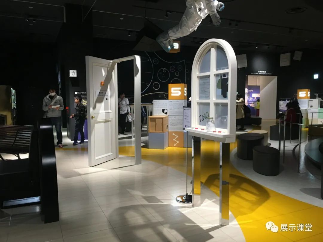 這個(gè)展區(qū)通過(guò)設(shè)置任意門、窗戶、頂面懸掛宇航員模型,讓空間變得更加有趣,充滿想象。還可以是圖版+氛圍營(yíng)造,將展廳想要展示的內(nèi)容,融入到整個(gè)展廳設(shè)計(jì)空間場(chǎng)景布置中。